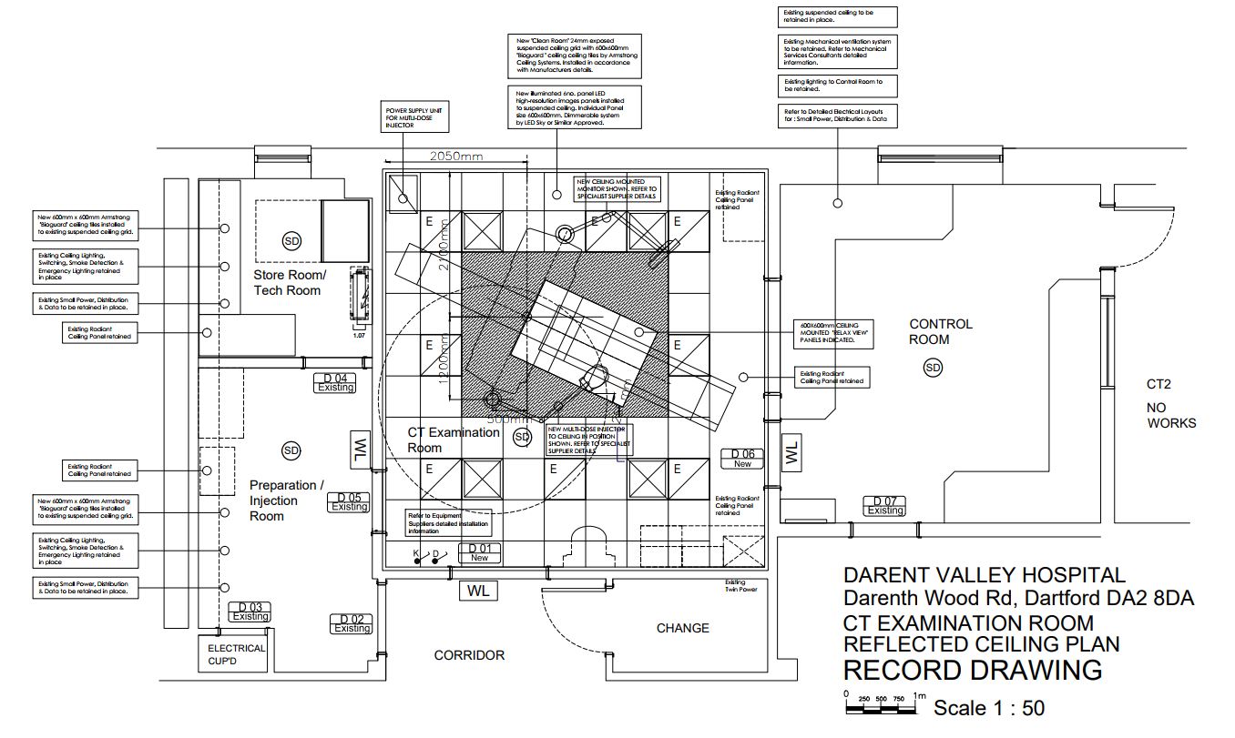 Reorganisation of an existing X-Ray facility and consulting rooms, to create a new CT Imaging Suite, with Reporting facilities and adjoining Consulting room. Working with Philips Healthcare Turnkey Projects and directly with the Trust. A complex project requiring detailed understanding of the facility and the coordination of medical services & equipment within the project.