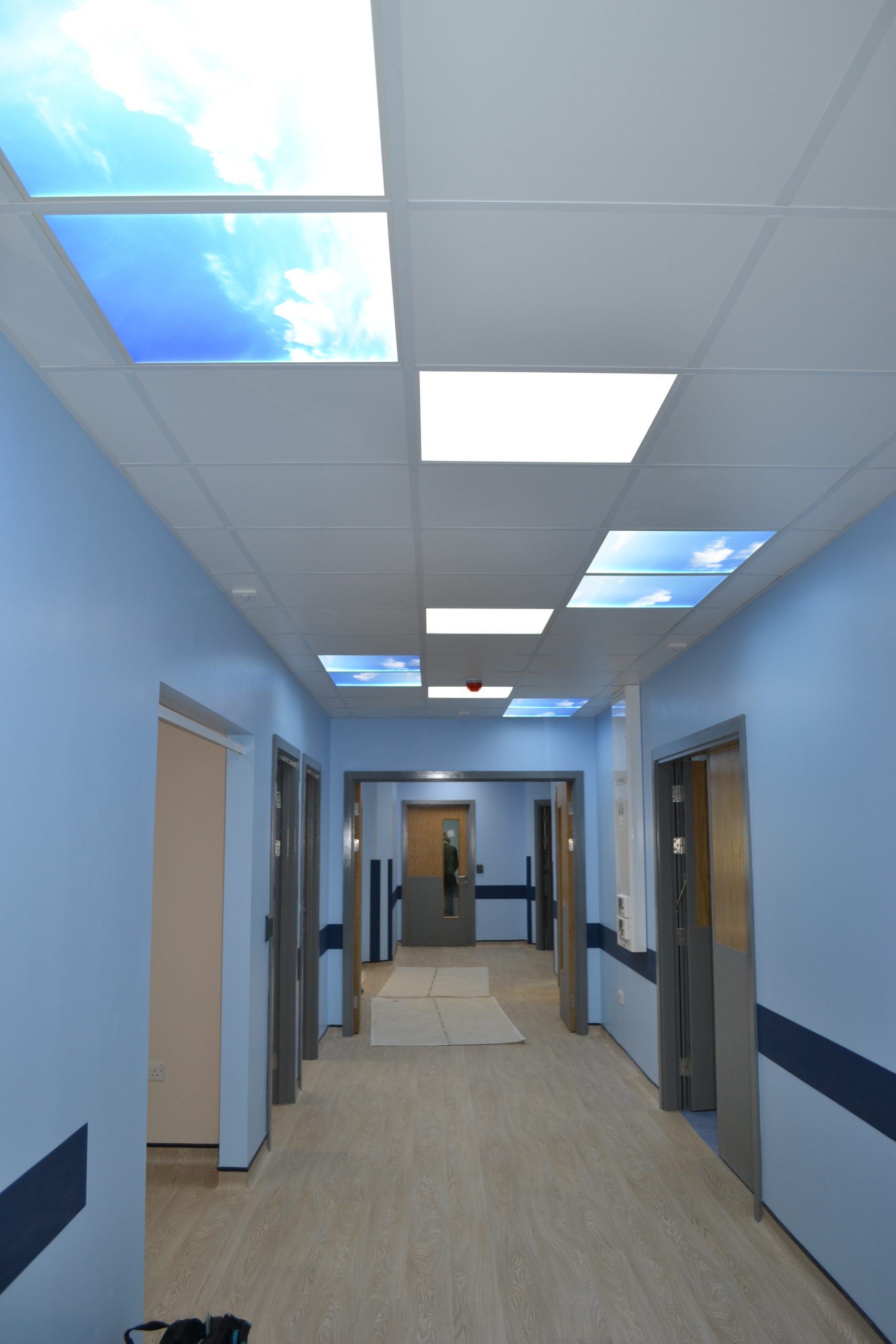 The new environment is dementia and child friendly and the addition of patterned ceiling tiles and the calm blue decor benefits the wellbeing of both staff and patients.